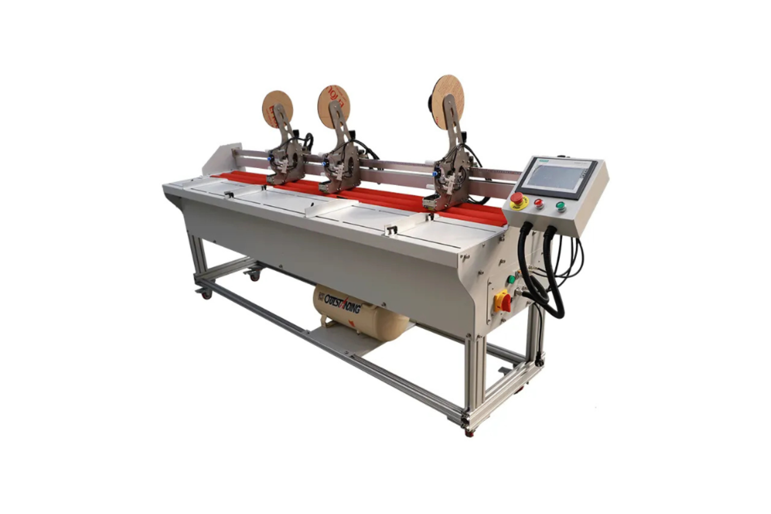 Stroj vybaven dotykovou obrazovkou a programy PLC, které umožňují programovat a ukládat množství úkonů, které souvisí s jednotlivými typy výrobků.
