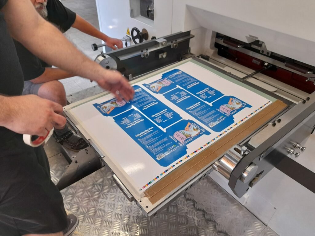 • Na základě tloušťky archu bude na výsekovou desku instalována šablona s příslušnou šířkou a výškou. Ve chvíli, kdy arch vstoupí do jednotky tvarového výseku a dostane se do kontaktu s raznicí, bude dosaženo bigování.
