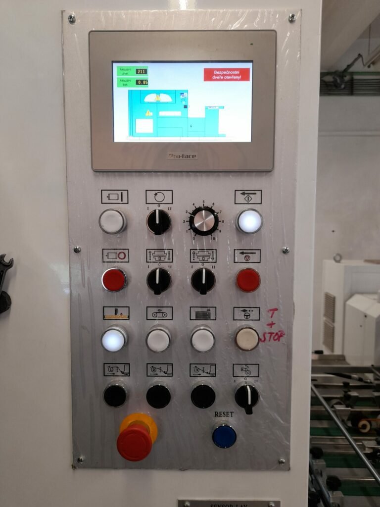 • Počítačový vizuální ovládací systém a provozní dotyková obrazovka umožňující okamžité zobrazení a sledování stavu stroje a možných příčin jeho zastavení.