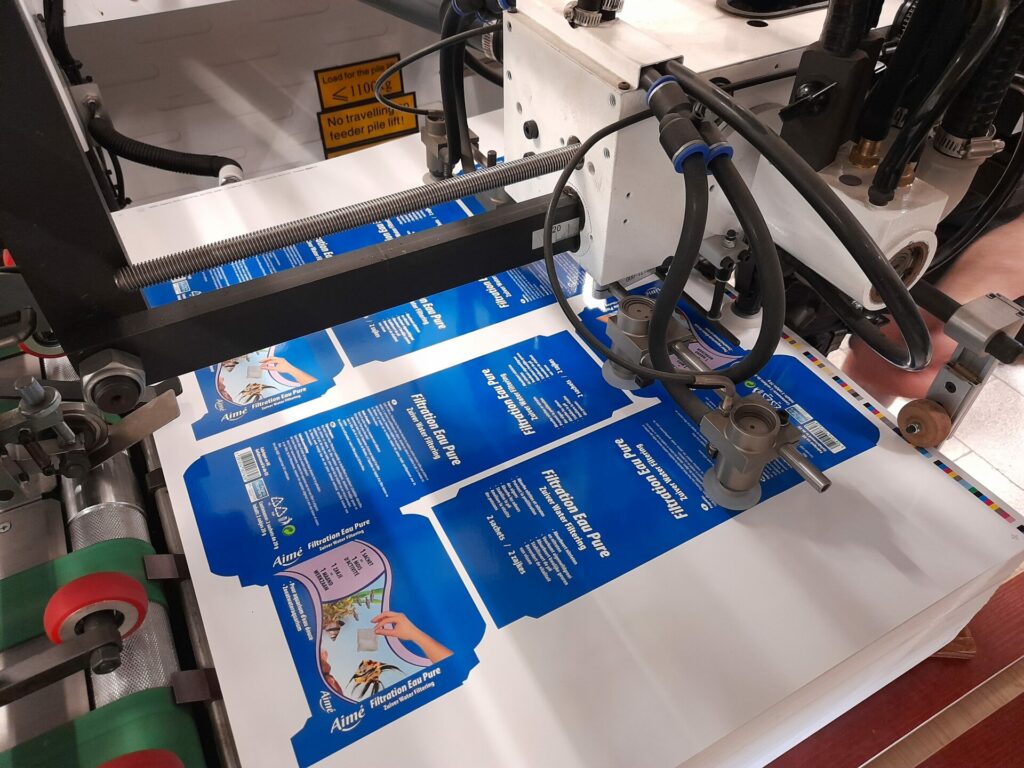 • Na základě tloušťky archu bude na výsekovou desku instalována šablona s příslušnou šířkou a výškou. Ve chvíli, kdy arch vstoupí do jednotky tvarového výseku a dostane se do kontaktu s raznicí, bude dosaženo bigování.